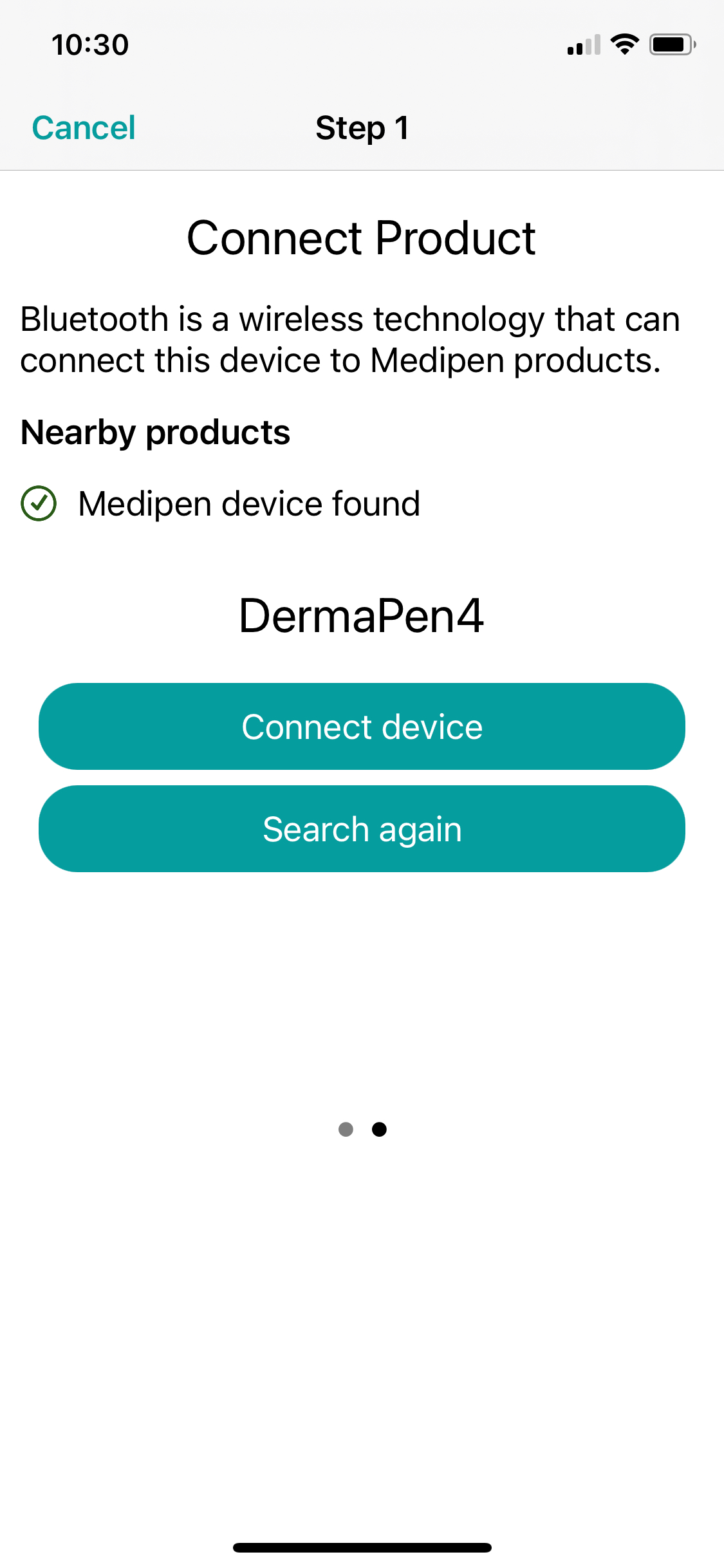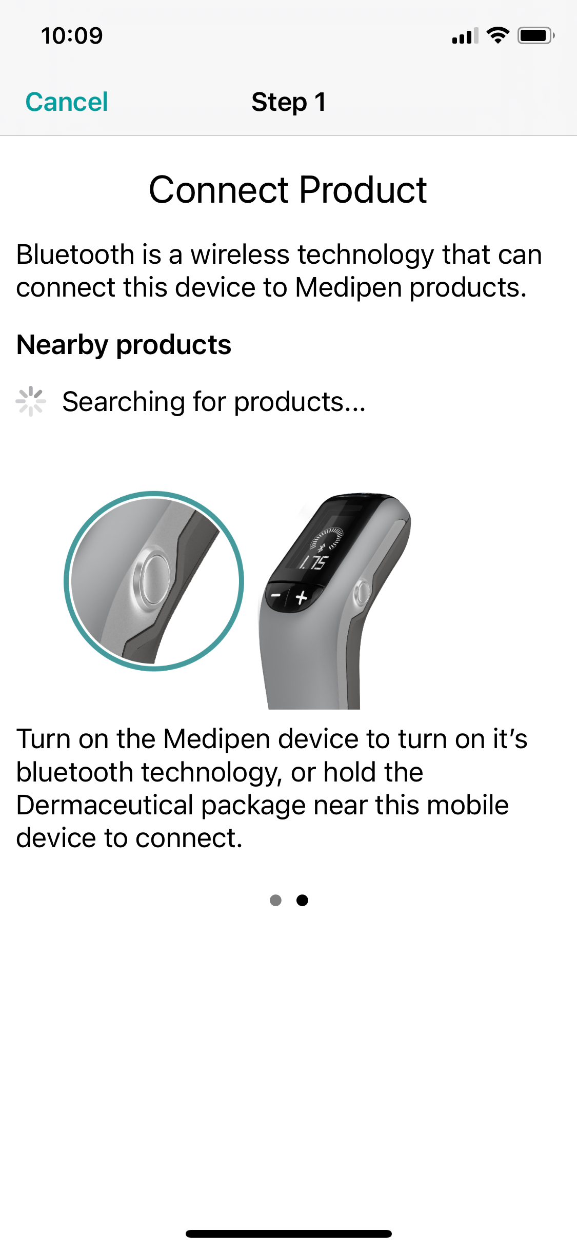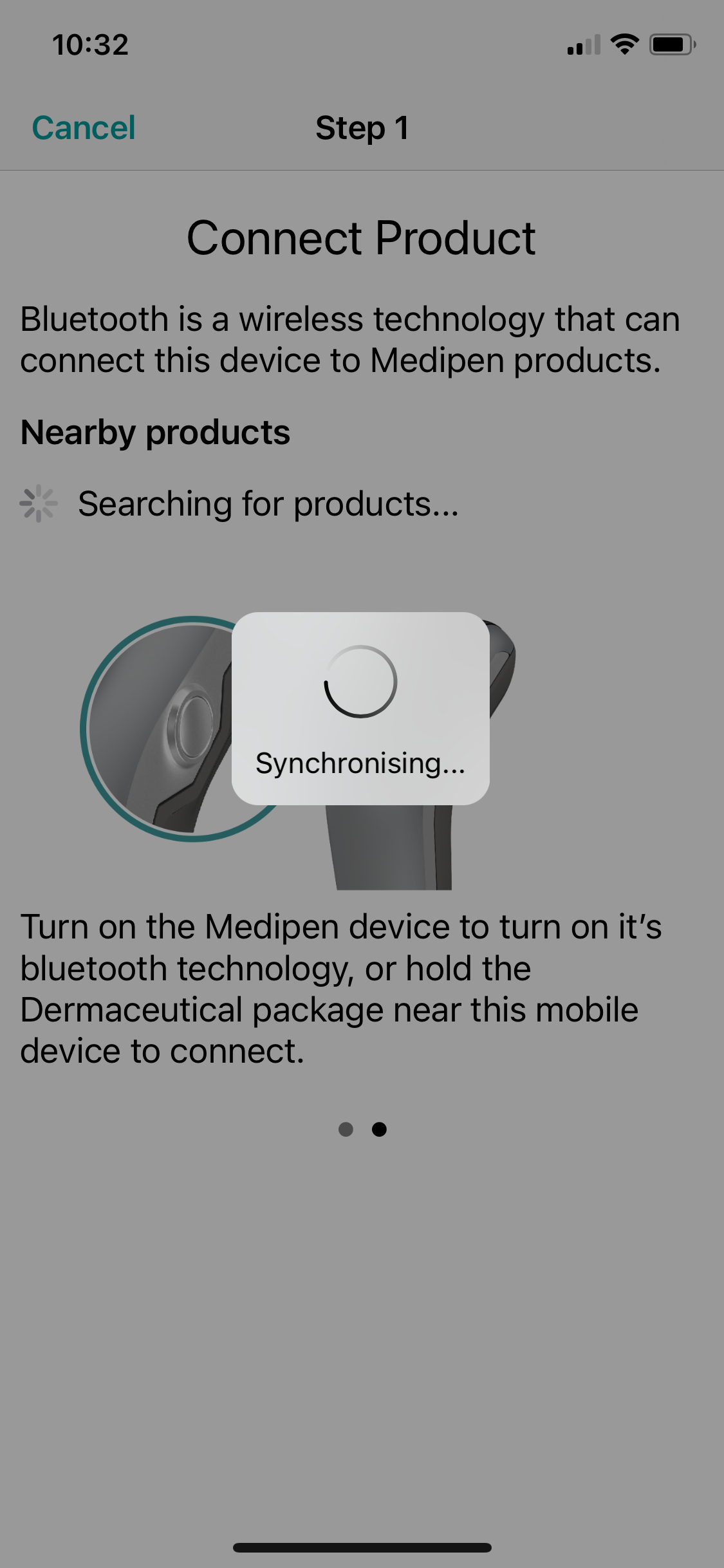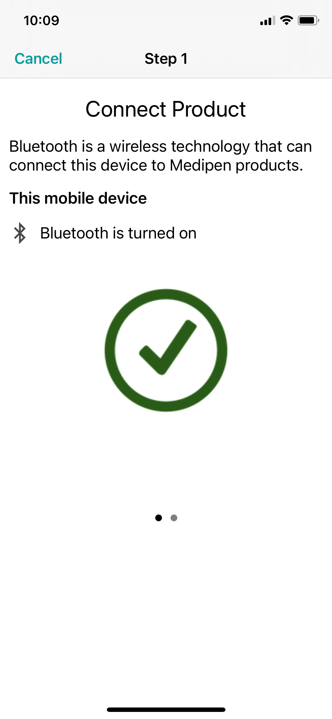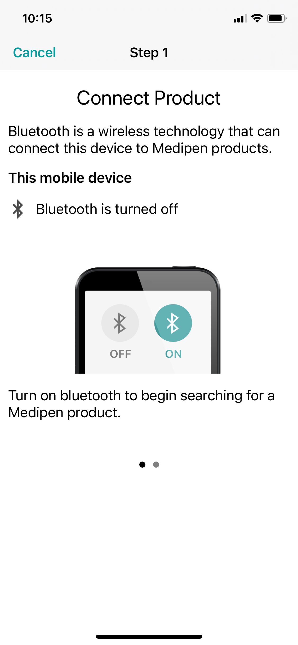 If bluetooth is not enabled, you will get a screen telling you to turn bluetooth on in order to connect your Medipen: