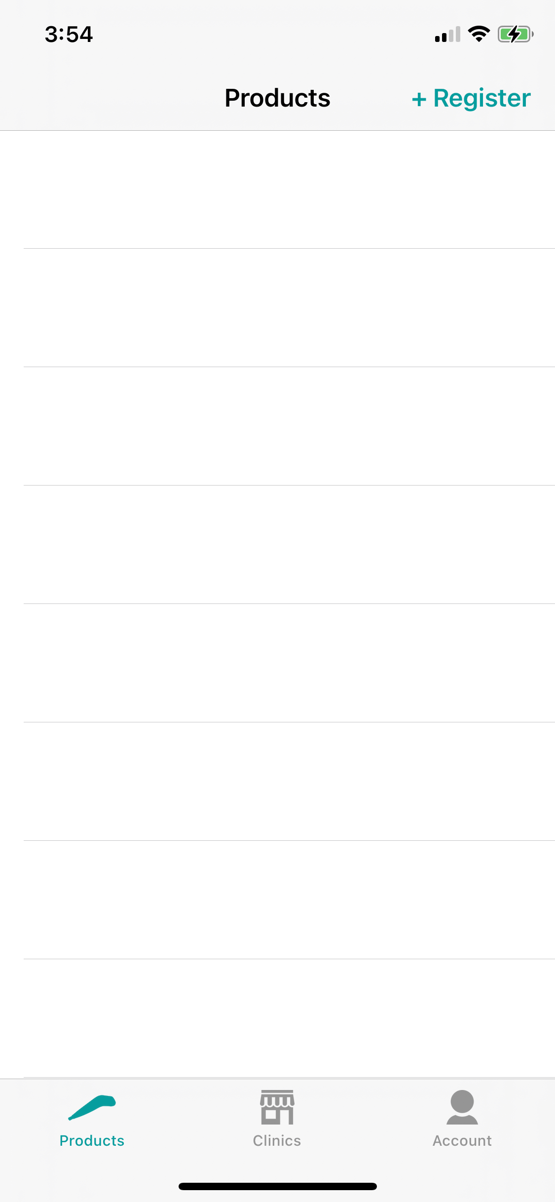 - On the Products page tap + Register button in the top right hand corner to begin registering your device.