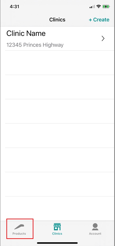 - After creating your clinic, tap the Product tab to navigate to the Product page.